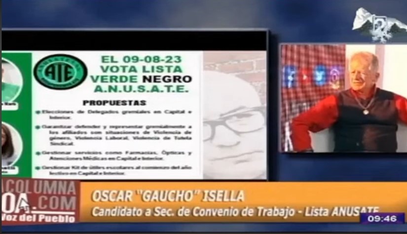 Salta / Argentina. – El próximo 9 de agosto se realizará las elecciones de la Asociación de Trabajadores del Estado y desde el espacio de ANUSATE, con la lista que lidera Ricardo “Cachete” Marti, se preparan para competir con el oficialismo. En entrevista para el programa LaColumnaNOA, el dirigente Oscar “Gaucho” Isella, candidato a secretario […]
