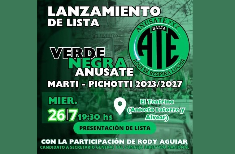 Elecciones ATE 2023: La lista Verde Negra hará el lanzamiento en el Teatrino