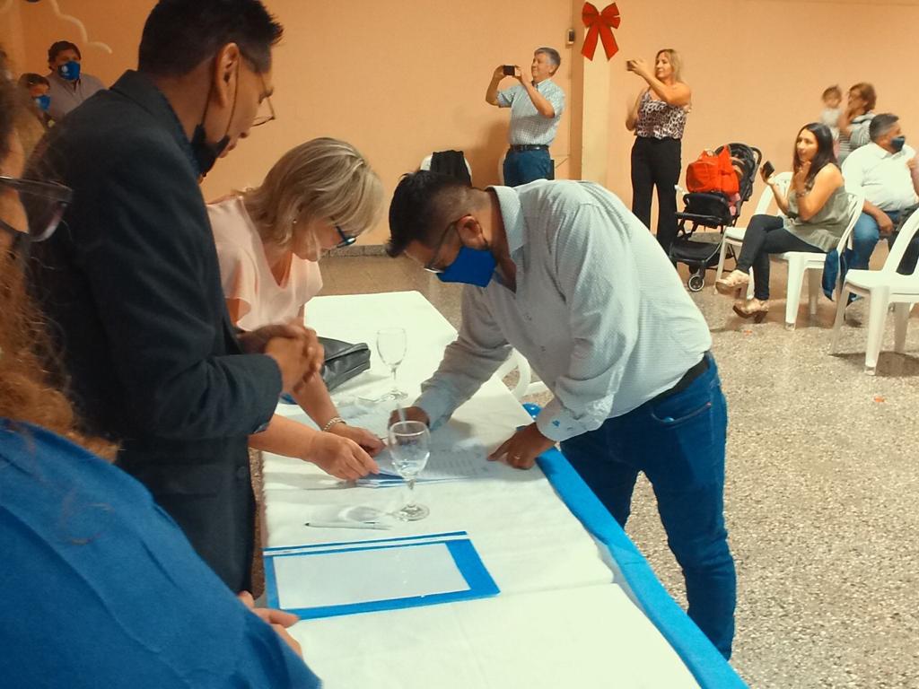 Salta/Argentina.- El jueves 23-12-2021, asumió Eduardo Lazarte, el segundo mandato por 4 años (2021-2025) en la Unión de Trabajadores de Entidades Deportivas y Civiles -UTEDYC- Salta. En el acto realizado en el Centro Policial Sargento Suárez de esta capital, también suscribieron el acta de posesión los miembros de la comisión directiva que integraron la Lista Azul y Blanca en las elecciones del 9-11-2021. En diálogo con LaColumnaNOA-TVDos Salta, el dirigente reelecto reiteró el concepto “Gracias por estar, porque una golondrina no hace el verano. Tenemos que estar en todos los ámbitos en defensa de nuestros derechos”. Al final, compartió un brindis por las fiestas de fin de año con los dirigentes sindicales, funcionarios de la Secretaria de Trabajo, periodistas y familiares de los directivos.