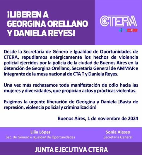 CTERA exige la liberación de Georgina Orellano y Daniela Reyes tras ser detenidas en Buenos Aires