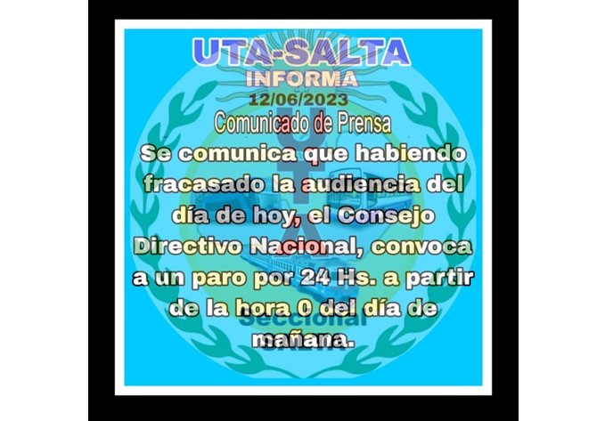 URGENTE | Paro de Colectivos desde las 0 horas de este martes Salta / Argentina – La UTA dio luz verde a la medida de fuerza y convocó a un paro nacional de transporte público de pasajeros tras el fracaso de las negociaciones con empresarios. Desde UTA Salta emitieron un comunicado, a través […]