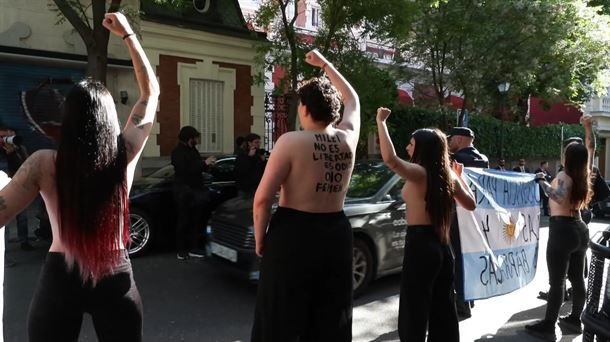 Feministas repudiaron la visita de Milei en la Embajada argentina en España