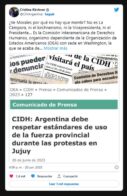 “¿Ve Morales por qué no hay que mentir? No es La Cámpora, ni el kirchnerismo, ni la Vicepresidenta, ni el Presidente… Es la Comisión Interamericana de Derechos Humanos, organismo dependiente de la Organización de Estados Americanos (OEA) con sede en Washington, la que se acaba de pronunciar sobre la represión que usted ordenó en su provincia, sosteniendo que “Argentina debe respetar estándares de uso de la fuerza provincial durante las protestas en Jujuy”. La comprensión de texto es para todos y todas Morales”, sostuvo la vicepresidenta.