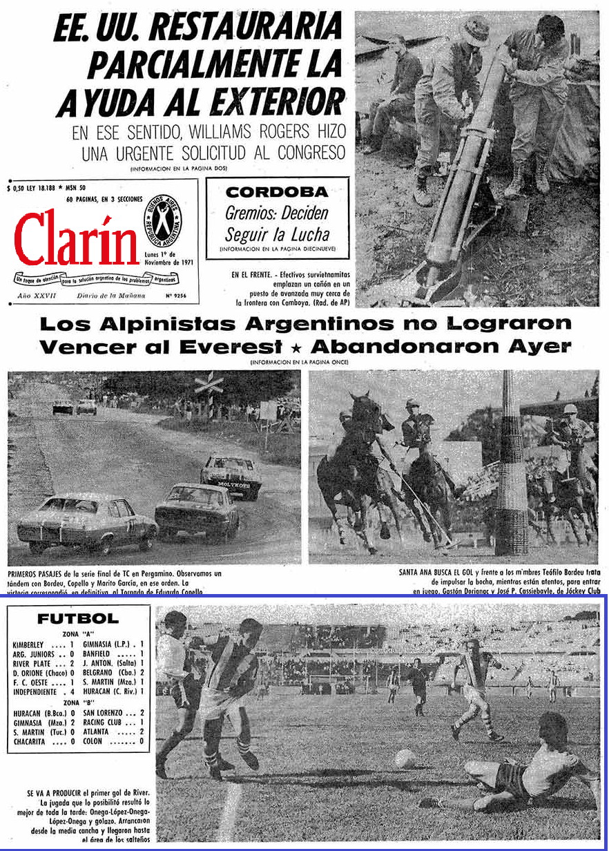 Salta/Argentina (Por Fernando Barbarán(1) Un 31 de octubre, pero de 1971, se enfrentaban en el Estadio Antonio Vespucio Liberti el Club Atlético River Plate y el Centro Juventud Antoniana por la 6° fecha del Torneo Nacional de 1971. Esta fue la primera participación de un equipo salteño en la Primera División del Fútbol Argentino.