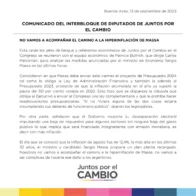El proyecto comenzará a debatirse mañana en la comisión de Presupuesto y Hacienda. La iniciativa crea un nuevo tributo que sólo pagará un grupo de contribuyentes que representa menos de 1% del total de las remuneraciones, jubilaciones y pensiones. “El Interbloque se reunió con el equipo económico de Patricia Bullrich y resolvió no votar las leyes irresponsables del ministro-candidato, que terminarán de fundir al país y generarán más inflación”, afirmó Mario Negri a través de su cuenta oficial de Twitter, donde además, compartió el comunicado del Frente de Juntos por el Cambio.