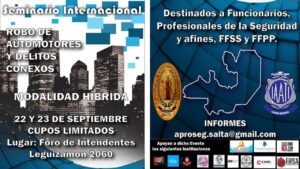 Salta / Argentina – El evento es organizado por la Asociación de Profesionales de Seguridad en Salta – APROSEG y está destinado a Funcionarios, Profesionales de la Seguridad y Afines, Personal de las Fuerzas de Seguridad y Fuerzas Policiales.