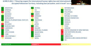 Ginebra-Suiza (Por Juan Gasparini(1).- ¿Dejará entrar Israel en su territorio una Comisión Investigadora de expertos independientes nombrados por el Consejo de Derechos Humanos de la ONU que investigue los crímenes en Jerusalén y en la Palestina ocupada? Resultado de votación de los representantes en Naciones Unidas en este tema. Argentina, votó a favor de esta comisión.