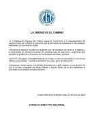 Desde la central obrera “valoramos el esfuerzo de todos los dirigentes que han trabajado por alcanzar el objetivo y la oportunidad de ofrecer una opción de consenso para los argentinos y argentinas que garantice la protección y el avance de los derechos laborales y sociales”. De esta forma la Central manifestó su respaldo. “Nuestro apoyo a la síntesis alcanzada por nuestro espacio y a la decisión de que la fórmula compuesta por Sergio Massa y Agustín Rossi sea la que represente al peronismo en el próximo proceso electoral”.