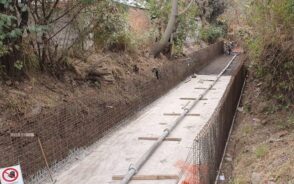 Salta / Argentina – Las obras, en la zona del barrio Autódromo, avanzan a buen ritmo, para asegurar el escurrimiento de las aguas de lluvia. Hoy se efectuaron nuevas tareas de hormigonado en la solera del canal, para luego proseguir con la construcción de la armadura de los muros laterales.