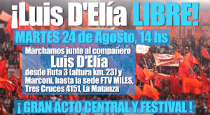Organizan Gran Acto y Festival por la libertad de Luis D’ Elia.