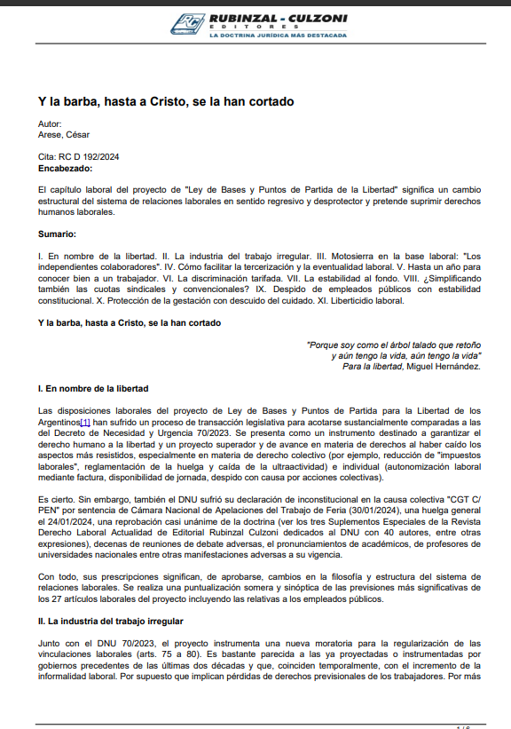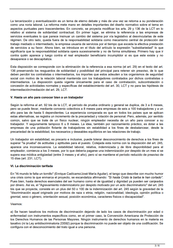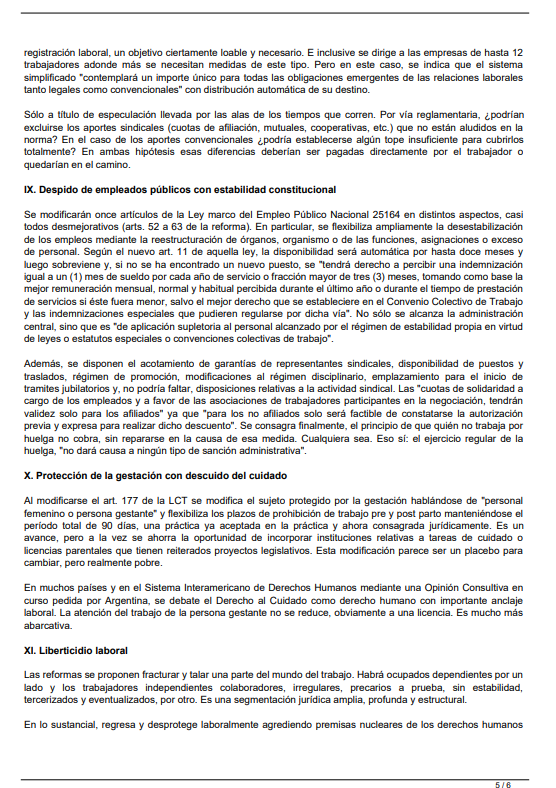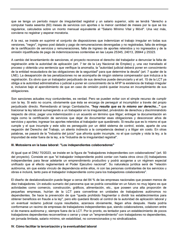 Según el autor César Arese, las disposiciones del proyecto representan un cambio regresivo y desprotector, orientado a suprimir derechos laborales fundamentales.
