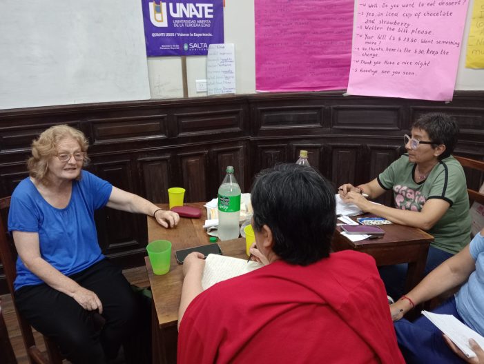 El jueves 5 de diciembre 2024, Raquel Adet, historiadora, poeta, visitó el Taller de Periodismo de UNATE. Llegó con dos libros, uno la obra completa de su padre, Walter Adet, el otro la compilación de sus trabajos de investigación. Después de una conversación previa  relató su historia de compromiso como profesional de la investigación histórica en relación a los derechos humanos, su investigación  sobre la represión, las torturas y  los desaparecidos, sucesos ocurridos en Salta en la última dictadura militar. También habló de  su pasión por la poesía, amoroso legado paterno.