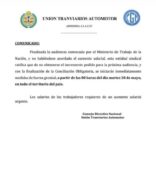 La Unión Tranviarios Automotor (Adherida a la CGT) emitió en las últimas horas un comunicado, a través del cual informa la resolución trascendida.